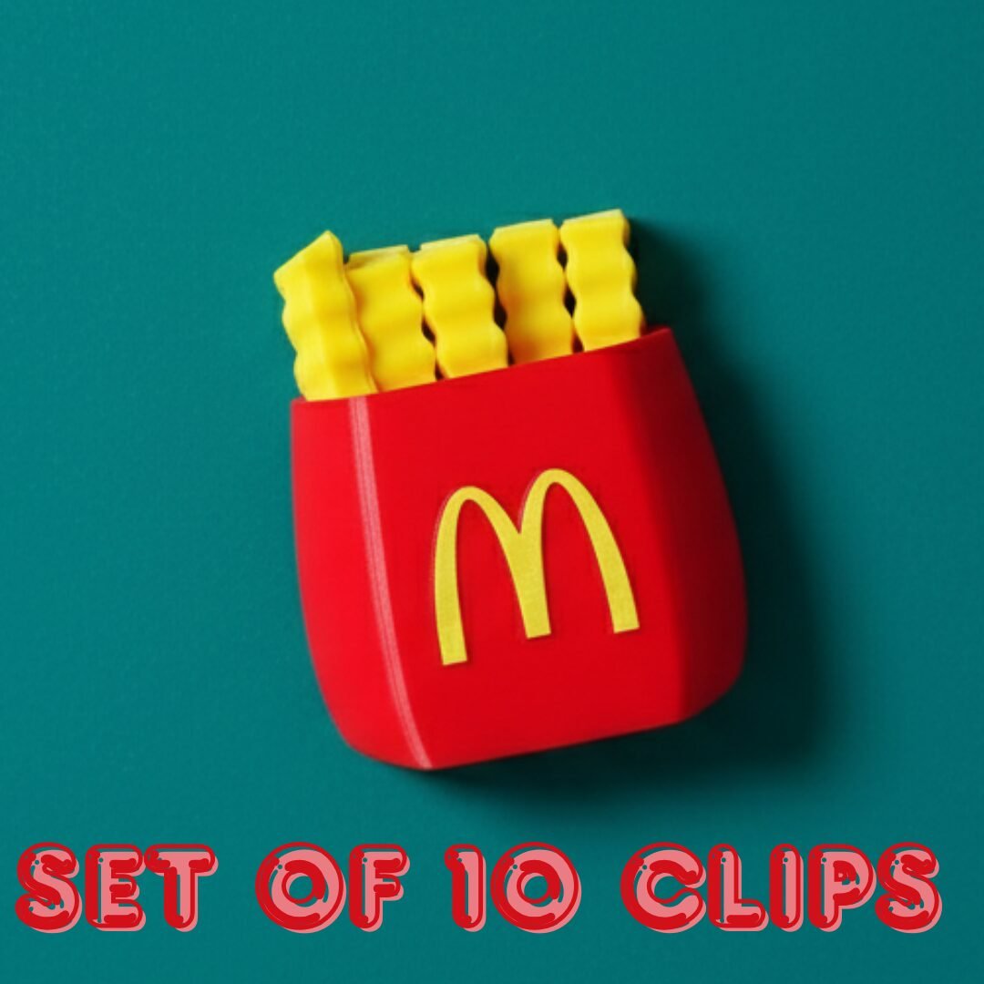 French Fries Shaped Bag Sealing Clips (Set of 10) Reusable, Ecofriendly Bag Clips for Snacks, Kitchen & Fridge | McDonald’s Fries Theme