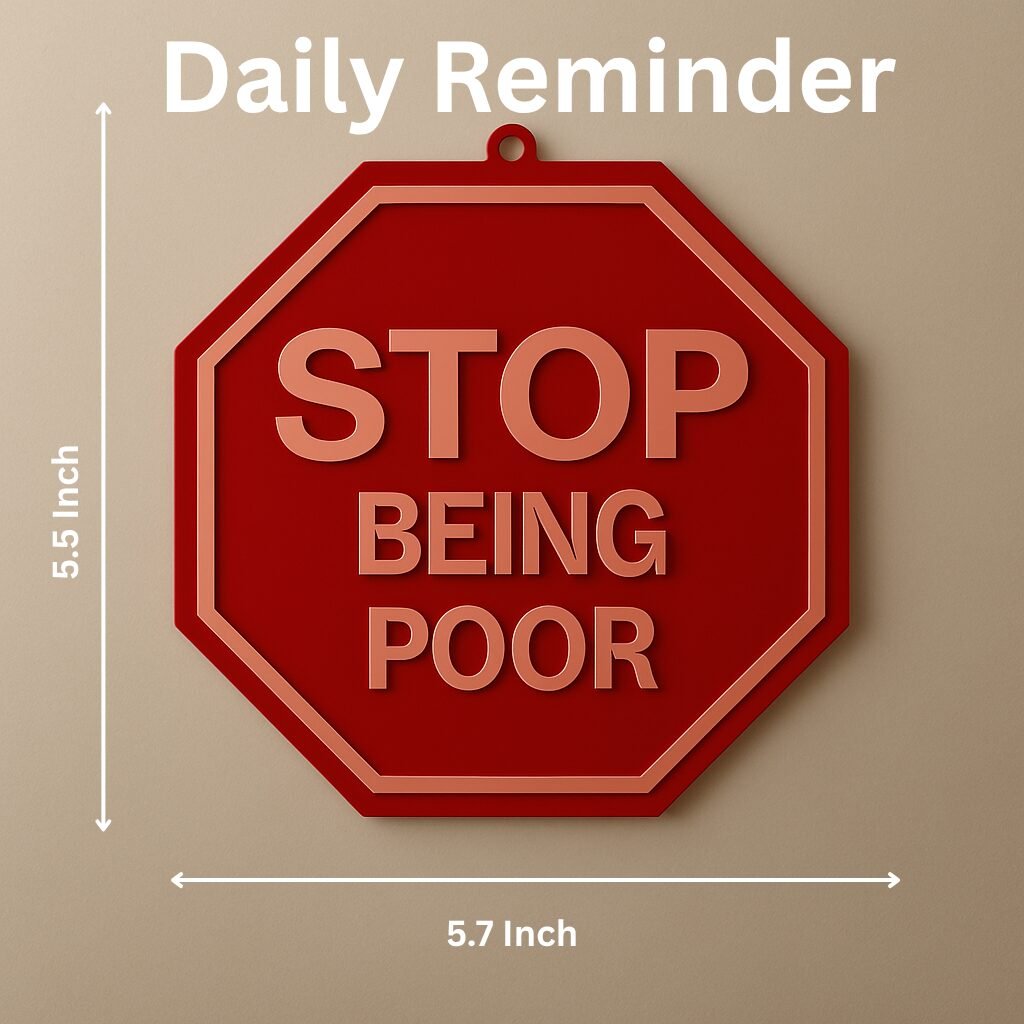 Stop being Poor wall/desk sign motivation. Wall decor made in PLA.